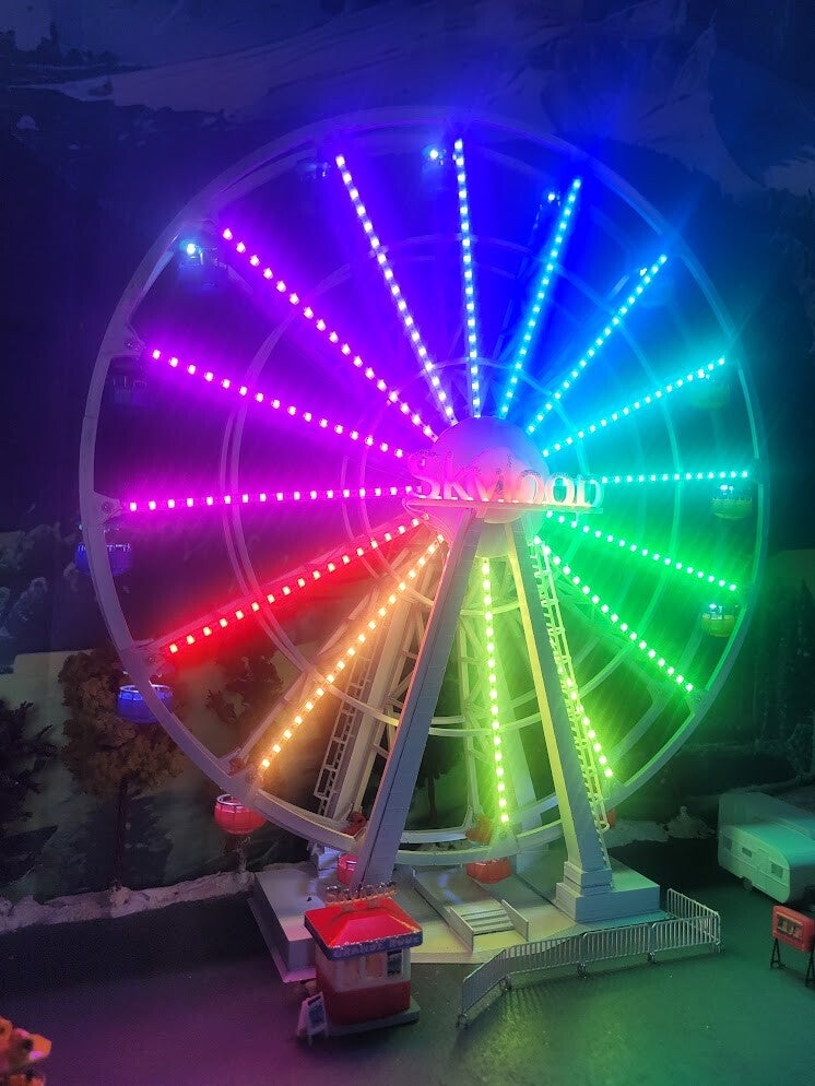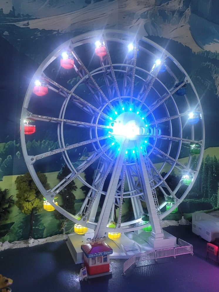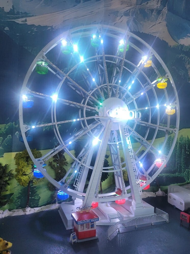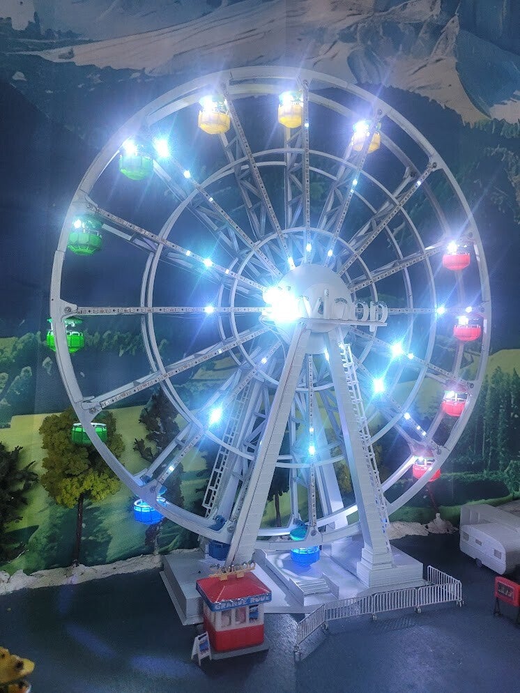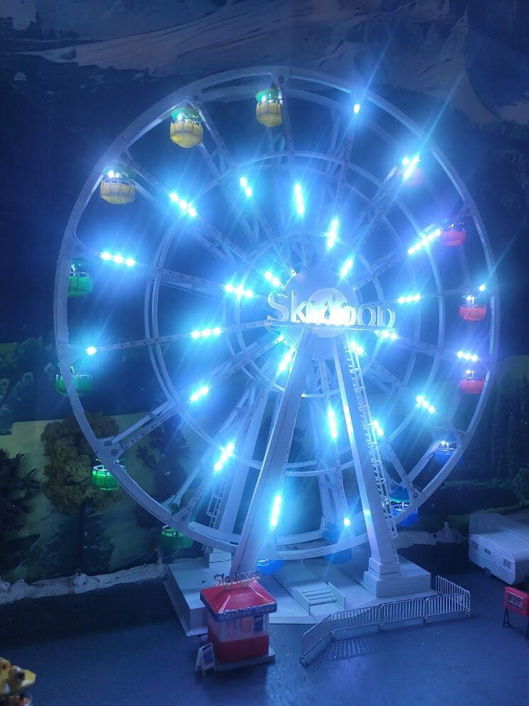 Découvrez une grande roue d’exception, proposée en deux versions, conçue pour offrir un rendu spectaculaire tout en restant simple à finaliser. Chaque modèle est pré‑assemblé à 90 % : il vous reste seulement à emboîter et coller les deux jambes, installer la roue, puis emboîter le moteur. Tout le câblage est déjà réalisé pour vous.