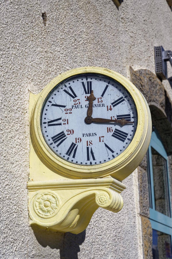 Horloge a deux cadran legerement incurvé a 10° . Ornement de type baroque, possibilité de rajouter l'éclairage