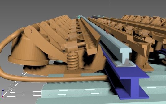 Comme dans la réalité, elle est positionnée dans une fosse pour garder le niveau des rails d'entrées et de sorties. Les traverses doivent rallonger pour garder le coté réaliste.